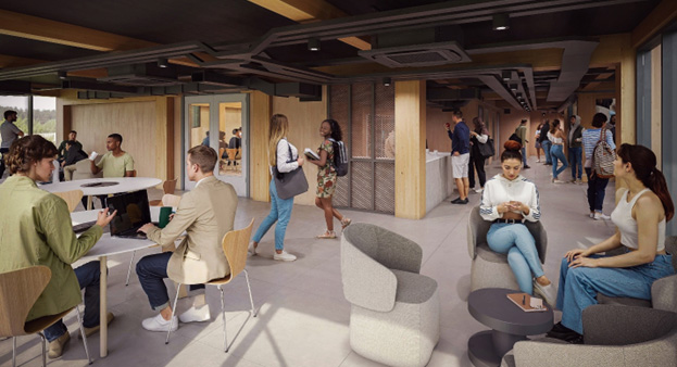 You can use the multifunctional area to showcase your projects, including makers' markets, student exhibitions and other pop-up events. There are personal study areas too, along with a prayer area and a base for student services.