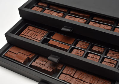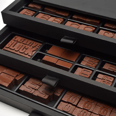 Resin letter press 'Chocolate' box selection by Sophie Slim