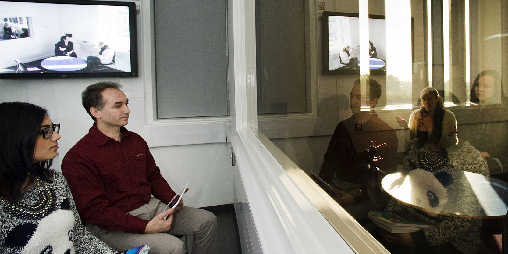 Psychology Observation Suite The Observation Suite contains an Observation Laboratory setup with a one-way mirror, video cameras and microphones to allow activities to be observed and recorded from the Control Room. Read more Find out more about our Psychology Observation Suite.