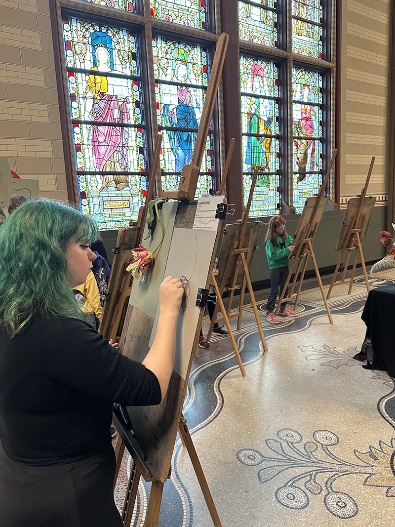 Illustration Highlights Home Features Illustration Highlights Brief Case competition wins and selling-out (in a good way!) at the Winter Fair. Brief Cases national design competitionAlong with BA (Hons) Graphic Design students, BA (Hons) Illustration students were rewarded with a huge total of thirteen awards for their work for Brief Cases - an exciting national design competition that links students with real companies. Illustration students from Staffordshire secured recognition and wins ranging from Gold to Highly Commended. The briefs and work completed were based on the UN's Sustainable Development Goals.Read moreGold Award winner Lewis Edwards produced an animation from his illustrations to combat packaging waste with an innovative and engaging 'Super Noodles' pot design.Kira Mawby won silver with a biodegradable and recyclable packaging concept for 'Nurofen' pain relief, along with a visual asset for the project.Watch the award winning solutionsThe Winter FairIllustration students were amongst many art and design students selling goods at our Winter Fair as maker-sellers. The event itself was promoted across the community with a winning poster design from Illustration student Robin Cavendar, following a brief from the Students' Union, whilst 3rd year Illustration student and Student Content Creator Tee shared her experiences of having a stall at the popular campus event for the second time.Read more The winning Winter Fair poster design by Illustration student Robin Cavendar Lewis Edwards' innovative Super Noodles packaging won him a Gold Award Kira Mawby's impressive reimagining of Nurofen pain relief packaging won Silver at the Brief Cases Teacher's Pet - a live brief, and a trip to Amsterdam! Teacher’s PetFinal year Illustration students worked with a local business who provides educational materials for teachers across the world. This provided a taste of working to a professional brief, meeting a deadline and the opportunity for artwork to be shared globally as part of a live project. Students have opportunities to build their portfolio with valuable industry-focused work such as this live brief throughout their time studying in our studio. AmsterdamIn Spring was a trip to Amsterdam, capital of the Netherlands with an impressive artistic heritage. Illustration students from across all years of study were part of a wider Art and Design group, that also included Photography and Graphic Design students. Students were able to take part in guided tours of leading design and immersive technology agencies, in addition to exploring the inspirational city and world-class Museum District. Modern installation exhibits at Moco, café sketching sessions, and drawing in The Rijksmuseum, the students were able to bring back plenty of inspiration for their practice back in the studio on campus. "My favourite parts of the trip were the museums and the journeys to them, as it allowed me to soak in my surroundings and inspire me, I took many photographs as references for future personal illustrations and mood boards. Other than the creative aspect of this trip, the entirety of it made me feel as though it was possible for a regular student like me to travel as an adult and it wasn’t something scary. I hadn’t flown for years so I was very nervous about it all, but leaving Amsterdam made me want to look forward to a trip abroad in the future." Afsana Begum, L6 Illustration Lights at the Moco World-class exhibitions at The Rijksmuseum Exploring the inspirational city streets of Amsterdam Gallery Hands-on activities. Such as drawing in The Rijksmuseum, Amsterdam. Hands-on activities. Such as drawing in The Rijksmuseum, Amsterdam. Brief Case award winning animations Video Including work from Gold Award winner Lewis Edwards and Silver Award winner Kira Mawby. I found the Amsterdam trip so enriching and inspiring. I loved the architecture, the museums, the scenery- just the overall experience. Molly looked after us illustration students, guided us and we were able to be independent and venture off on our own for a short period of time. Related courses Illustration BA (Hons) Study options Full-time