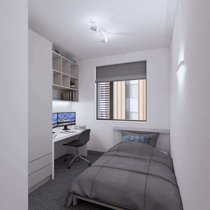 Gold Classic (Standard Ensuite Room) Home Student life Accommodation Our accommodation Gold Classic (Standard Ensuite Room) Coming in 2026 For a lively and social student experience, our Gold Classic rooms provide the classic halls atmosphere. You'll share an open-plan kitchen, dining and living area with 8 -12 students where you can connect and make friends. All bedrooms are ensuite with modern furnishings, creating the perfect retreat after a day at university. £192/week £7,488 annually for minimum 42 weeks. Your duration can be extended if required. Bills included All included in the licence fee Private ensuite bathroom With a shared kitchen and lounge for 8-12 residents Imagery is indicative and not literal. Photos are artistic impressions. Ensuite bedroom (artistic impression) Shared kitchen (artistic impression) Shared living space (artistic impression) Student Village (artistic impression) Student Village (artistic impression) Student Village (artistic impression) Student Village (artistic impression) Student Village (artistic impression) What's included? All university managed accommodation is within walking distance of the post room and launderette (pay as you use). Residents also have access to ResLife events, are in close proximity to our on-campus bars and cafes, plus get free membership to our on-campus sports centre. 24 hour security Including on site daytime police officer and SafeZone app Contents insured £10,000 Personal Contents Insurance (T&Cs apply) Free membership At our on campus gym and sports centre Your room Bedframe and mattress (small double) En-suite with shower, toilet, sink and mirror Desk Desk chair Drawers Wardrobe Shelving Pinboard Internet access via ASK4 (T&Cs apply) Shared spaces Fridges Kettle Dining table and chairs Sofas Lounge Dining area Communal laundry facilities Kitchen Oven with hob What's NOT included TV licence - if you plan on watching live TV, or services that require a licence in your bedroom, it is your responsibility to purchase a TV licence. Location Gold Classic rooms are located in our new Student Village at the Leek Road site of our Stoke-on-Trent Campus. Set between our Nature Reserve, and the Nursery and Forest School, the Student Village is an eight minute walk to the Leek Road site centre, and a 15 minute walk from College Road. You can also walk into Stoke town centre where you will find supermarkets, a weekly market, shops, bars and restaurants. Stoke-on-Trent Railway Station is also just an eight minute walk away. Disclaimer Rooms are subject to availability. The Student Village is currently under construction. The images shown in the advertising materials are artistic renderings of the room appearance and are for illustrative purposes only. In the unlikely event that your accommodation is not ready on time, you will still be allocated a room in alternative accommodation and will move to your first choice accommodation as soon as it is available. Sorry, this video requires the use of functional cookies which you have not consented to use. Please update your cookie settings This room will be open for applications in 2026. View all accommodation