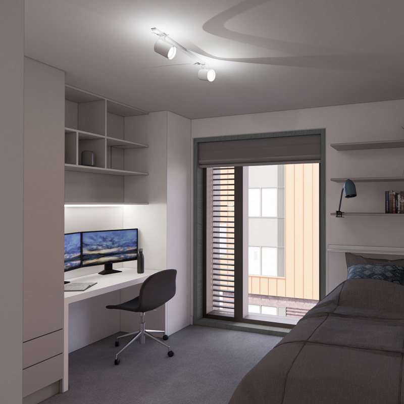 Gold Premium (Large Ensuite room) Home Student life Accommodation Our accommodation Gold Premium (Large Ensuite room) Coming in 2026 For a lively and social student experience, our Gold Premium rooms provide the classic halls atmosphere. You'll share an open-plan kitchen, dining and living area with 8 -12 students where you can connect and make friends. All bedrooms are ensuite, and Gold Premium rooms come with a larger area so you can personalise your space. £210/week £8,610 annually for minimum 42 weeks. Your duration can be extended if required. Bills included All included in the licence fee Larger bedroom with private ensuite bathroom 8 to 12 residents with shared kitchen and lounge Imagery is indicative and not literal. Photos are artistic impressions. Ensuite bedroom (artistic impression) Shared kitchen (artistic impression) Living space (artistic impression) Student Village (artistic impression) Student Village (artistic impression) Student Village (artistic impression) Student Village (artistic impression) Student Village (artistic impression) Student Village (artistic impression) What's included? All university managed accommodation is within walking distance of the post room and launderette (pay as you use). Residents also have access to ResLife events, are in close proximity to our on-campus bars and cafes, plus get free membership to our on-campus sports centre. 24 hour security Including on site daytime police officer and SafeZone app Contents insured £10,000 Personal Contents Insurance (T&Cs apply) Free membership At our on campus gym and sports centre Your room Bedframe and mattress (small double) En-suite with shower, toilet, sink and mirror Desk Desk chair Drawers Wardrobe Shelving Pinboard Internet access via ASK4 (T&Cs apply) Shared spaces Fridges Kettle Dining table and chairs Sofas Lounge Dining area Communal laundry facilities Kitchen Oven with hob What's NOT included TV licence - if you plan on watching live TV, or services that require a licence in your bedroom, it is your responsibility to purchase a TV licence. Location Gold Premium rooms are located in our new Student Village at the Leek Road site of our Stoke-on-Trent Campus. Set between our Nature Reserve, and the Nursery and Forest School, the Student Village is an eight minute walk to the Leek Road site centre, and a 15 minute walk from College Road. You can also walk into Stoke town centre where you will find supermarkets, a weekly market, shops, bars and restaurants. Stoke-on-Trent Railway Station is also just an eight minute walk away. Disclaimer Rooms are subject to availability. The Student Village is currently under construction. The images shown in the advertising materials are artistic renderings of the room appearance and are for illustrative purposes only. In the unlikely event that your accommodation is not ready on time, you will still be allocated a room in alternative accommodation and will move to your first choice accommodation as soon as it is available. Sorry, this video requires the use of functional cookies which you have not consented to use. Please update your cookie settings This room will be open for applications in 2026. View all accommodation